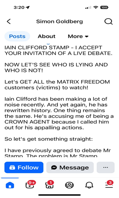 There are many sites dedicated to the business activities of MATRIXFREEDOM and Iain Clifford (Stamp), but none have the real inside track and first-hand experience of working within MATRIXFREEDOM